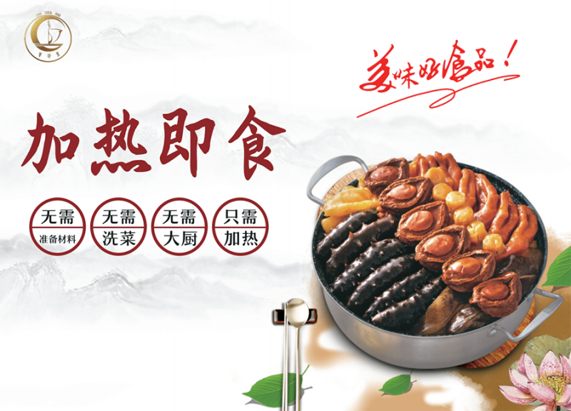 產(chǎn)品開發(fā) 2013年,由6位資深總廚在深圳組成核心團(tuán)隊(duì),配合現(xiàn)代化的中央廚房,將傳統(tǒng)珍稀佳肴、高端海味山珍做成復(fù)熱即食的統(tǒng)一化、標(biāo)準(zhǔn)化產(chǎn)品,成為餐珍寶品牌可持續(xù)發(fā)展的意義 所在。 “餐珍寶”品牌下的所有產(chǎn)品均通過國(guó)家SC/QS權(quán)威認(rèn)證,生產(chǎn)過程嚴(yán)格執(zhí)行國(guó)家食品質(zhì)量安全規(guī)范,讓客戶消費(fèi)的舒心,吃的放心。 “餐珍寶”品牌秉承“誠(chéng)信創(chuàng)業(yè),立創(chuàng)標(biāo)桿;品牌效應(yīng),長(zhǎng)期共存”的經(jīng)營(yíng)目標(biāo),致力于高端食品大眾化,讓鮑參燕翅肚走進(jìn)千家萬戶,希望透過一份溫暖的食物,為每一個(gè)人帶 來愛與力量。 “餐珍寶”是您健康美味的最佳選擇。